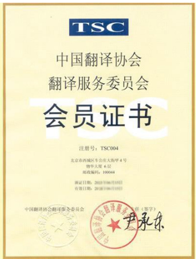 中國翻譯協(xié)會證書 中國翻譯協(xié)會單位會員 中國翻譯協(xié)會委員會證書
